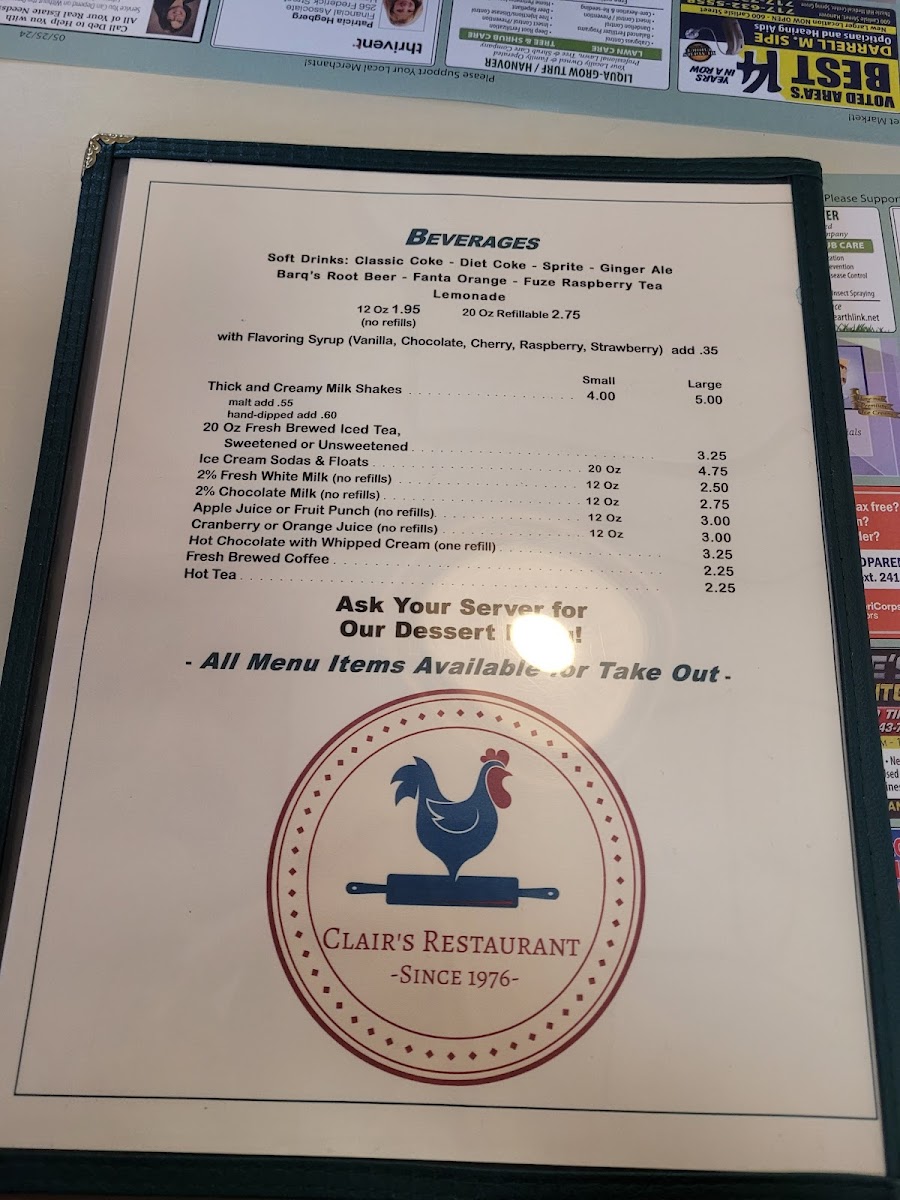 Save room for dessert, as their hand-spun milkshakes and sundaes top off a delightful experience. Discover the charm of Clair's, where every meal feels like a nostalgic hug.